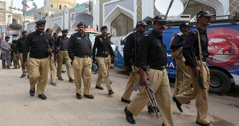 পর পর আত্মঘাতী হানার জেরে তৎপরতা পাক পুলিশেও। ছবি: এএফপি।