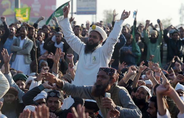 তেহরিক-ই লাবাইক সমর্থকদের বিক্ষোভ। ছবি :রয়টার্স।