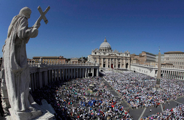 সেন্ট পিটার্সে হাজির হয়েছেন অগণিত মানুষ। ছবি: এপি।