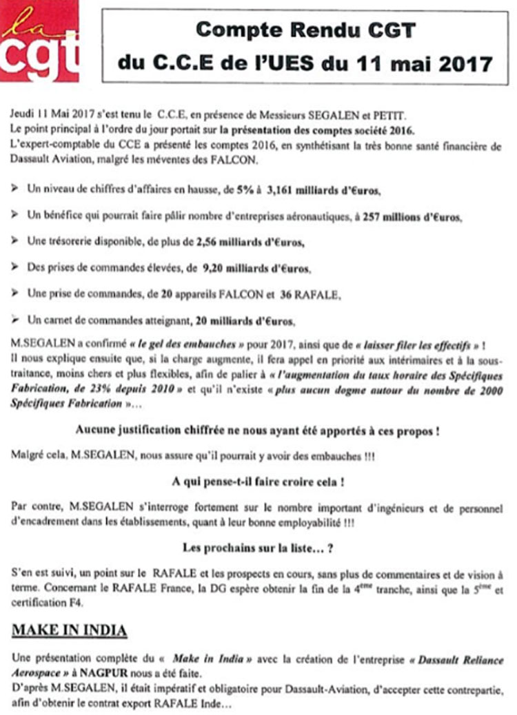 দাসো অ্যাভিয়েশনের সেই শীর্ষ স্তরের বৈঠকের কার্যবিবরণী
