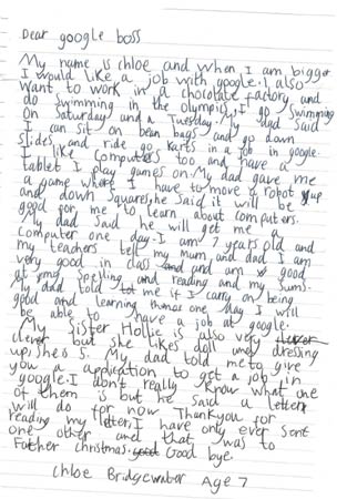 এই ভাবে নিজের ‘বায়োডেটা’ দেওয়ার পর তার চিঠি লেখার ‘এক্সপিরিয়েন্স’ কতটা, ‘গুগলের বস’কে সে কথাও জানিয়েছে ক্লোয়ি। লিখেছে, ‘‘এটা আমার লেখা দ্বিতীয় চিঠি। এর আগে আমি একটাই চিঠি লিখেছিলাম, ফাদার ক্রিসমাসকে।’’