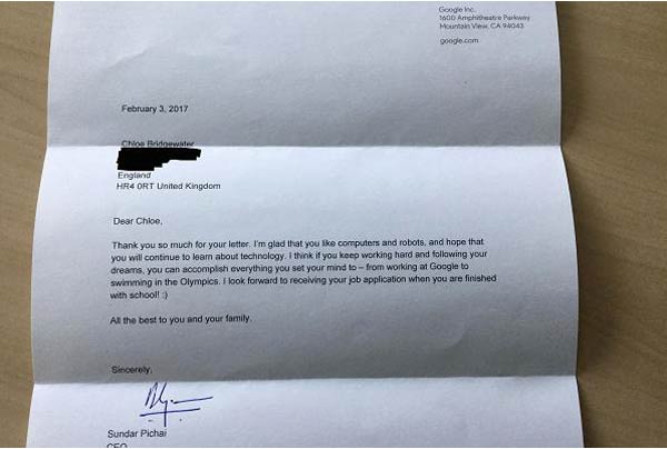চিঠিতে কী লিখেছিল ছোট্ট ক্লোয়ি, গুগলের ঝকঝকে সিইও’কে?
