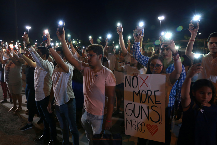 অস্ত্র নিয়ন্ত্রণের দাবি স্থানীয় মানুষের। ছবি: এপি।
