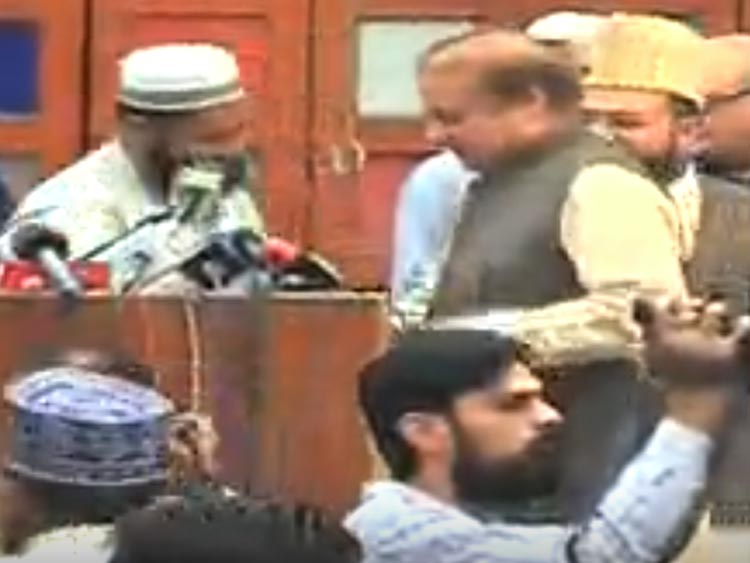 পাক বিদেশমন্ত্রীর পর এ বার প্রাক্তন প্রধানমন্ত্রী নওয়াজ শরিফ। শনিবার পাক বিদেশমন্ত্রী খাজা মহম্মদ আসিফের মুখে কালি ছেটানো হয়েছিল। রবিবার লাহৌরে দলের সভা চলাকালীন নওয়াজ শরিফকে জুতো ছুড়ে মারার অভিযোগ উঠল এক ছাত্রের বিরুদ্ধে। দুই ক্ষেত্রেই হামলাকারীরা জানিয়েছেন, পাকিস্তানে মুসলিম বলে স্বীকৃতি পেতে নবি মহম্মদকে উল্লেখ করে যে ধারা আছে, তা বদলানোর চেষ্টার বিরুদ্ধেই এই ‘প্রতিবাদ’।