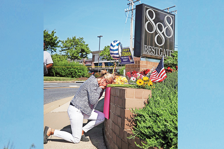 স্মরণ: কান্নায় ভেঙে পড়েছেন তরুণী। নিহতদের মধ্যে রয়েছেন তাঁর শিক্ষক জন ম্যাকনামারাও। শুক্রবার অ্যানাপলিসে।