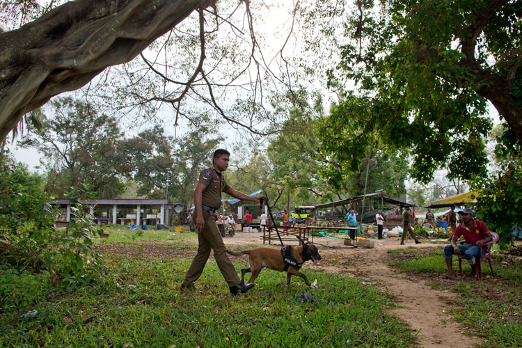 শ্রীলঙ্কার আমপারায় জাহরানের ঘাঁটিতে সেনা তল্লাশি। ছবি: রয়টার্স।