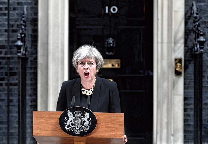 সন্ত্রাস যে ফিরে আসতে পারে, সে আশঙ্কা ম্যানচেস্টারের ঘটনার পরই প্রকাশ করেছিলেন প্রধানমন্ত্রী টেরেসা মে। শনিবারের ঘটনার পরে কনজারভেটিভ ও লেবার পার্টি শেষ বেলার প্রচার বন্ধ রেখেছে। কোবরা জরুরি কমিটির সঙ্গে বৈঠক করেছেন টেরেসা। তার পরে ১০ ডাউনিং স্ট্রিটের বাইরে এসে বলেছেন, ‘‘যথেষ্ট হয়েছে। ভাবার কোনও কারণ নেই যে এ ভাবেই সব চলতে থাকবে।’’ টেরেসা মনে করছেন, ব্রিটেনে কট্টরপন্থার প্রতি অতিরিক্ত সহিষ্ণুতা রয়েছে। তাঁর মতে, এ বার প্রয়োজন ‘কড়া’ দাওয়াই।
