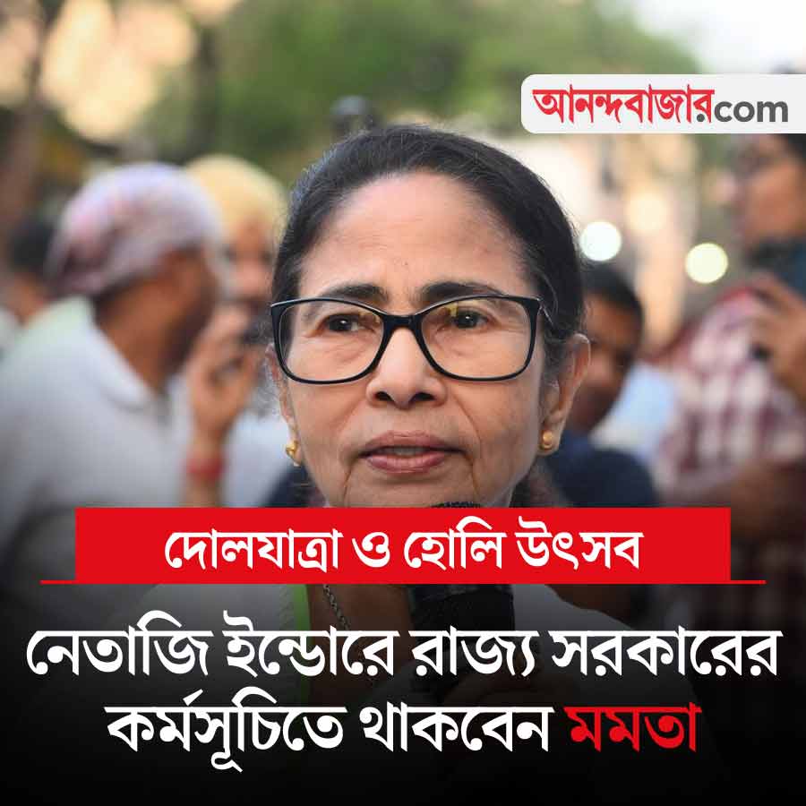 পশ্চিমবঙ্গ সরকারের উদ্যোগে হচ্ছে দোলযাত্রা ও হোলি উৎসব। ৩ ও ৪ মার্চ দেশ জুড়ে পালিত হবে দোল ও হোলি উৎসব। তাই রাজ্য সরকারের উদ্যোগে সেই আয়োজন করা হয়েছে সোমবার। মুখ্যমন্ত্রী মমতা বন্দ্যোপাধ্যায়ের উপস্থিতিতে নেতাজি ইন্ডোর স্টেডিয়ামে এই উৎসব পালিত হবে। বিকেল চারটেয় শুরু।