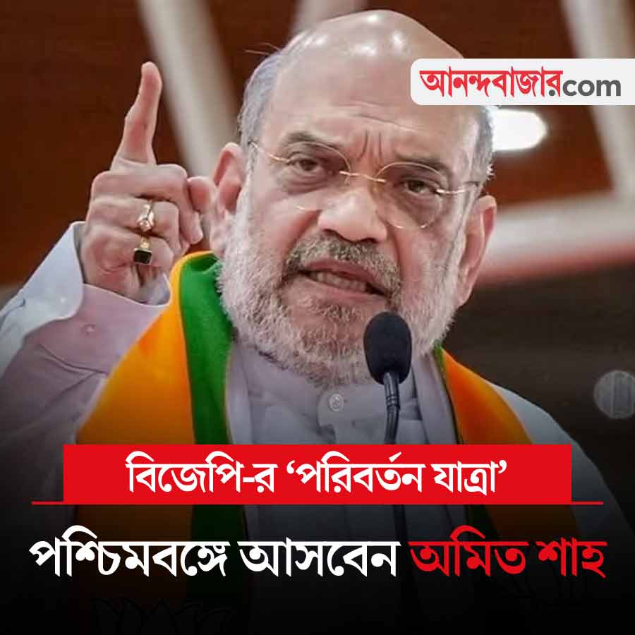 আজ কেন্দ্রীয় স্বরাষ্ট্রমন্ত্রী অমিত শাহ পশ্চিমবঙ্গে আসছেন বিজেপির ‘পরিবর্তন যাত্রা’র সূচনা করতে। দক্ষিণ ২৪ পরগনা সাংগঠনিক বিভাগের ‘যাত্রা’ শুরু হচ্ছে মথুরাপুর সাংগঠনিক জেলার রায়দিঘি থেকে। সেখানে জনসভা করে ‘যাত্রা’র আনুষ্ঠানিক উদ্বোধন করবেন শাহ। বেলা ২টো নাগাদ শাহের জনসভা শুরু হওয়ার কথা। কেন্দ্রীয় স্বরাষ্ট্রমন্ত্রীর পাশাপাশি কেন্দ্রীয় প্রতিরক্ষামন্ত্রী রাজনাথ সিংহ, কেন্দ্রীয় কৃষিমন্ত্রী শিবরাজ সিংহ চৌহান এবং মহারাষ্ট্রের মুখ্যমন্ত্রীর দেবেন্দ্র ফডণবীসও আজ রাজ্যের নানা প্রান্তে থাকছেন একই কর্মসূচিতে। আর থাকছেন বিজেপির সর্বভারতীয় সভাপতি নিতিন নবীন।