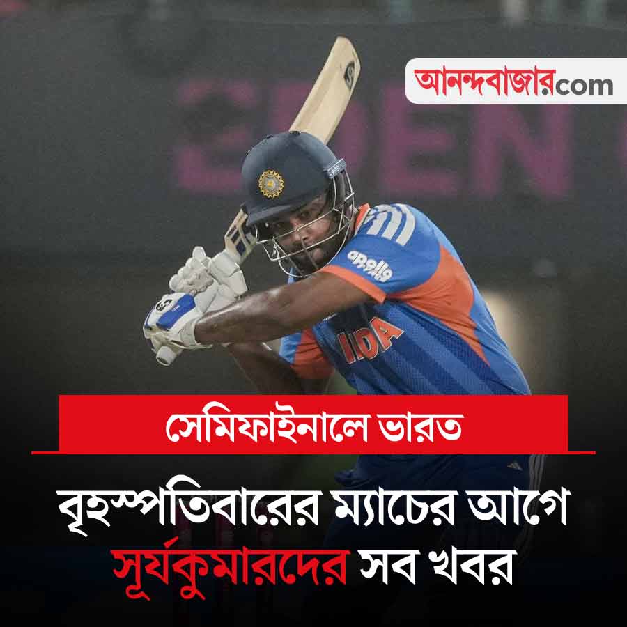 ইডেনে ওয়েস্ট ইন্ডিজ়কে হারিয়ে টি-টোয়েন্টি বিশ্বকাপের সেমিফাইনালে উঠে গিয়েছে ভারত। বৃহস্পতিবার ভারতের সেমিফাইনাল ম্যাচ ইংল্যান্ডের বিরুদ্ধে। মুম্বইয়ে খেলা। এই ম্যাচের আগে তিন দিন বিশ্রামের সুযোগ পাচ্ছেন সূর্যকুমার যাদবেরা। দলকে গুছিয়ে নেওয়ার পালা গৌতম গম্ভীরের। কী ভাবে তৈরি হচ্ছে ভারত? থাকছে সব খবর।