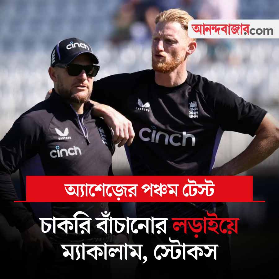 আজ থেকে শুরু হচ্ছে অ্যাশেজ়ের শেষ টেস্ট। প্রথম তিনটি ম্যাচ জিতে সিরিজ় পকেটে পুরে নিয়েছে অস্ট্রেলিয়া। চতুর্থ টেস্টে জিতে মানরক্ষা করেছে ইংল্যান্ড। তার আগে ছুটি কাটাতে গিয়ে মদ্যপান করে বিতর্কে জড়িয়েছে ইংরেজরা। প্রশ্ন উঠেছে কোচ ব্রেন্ডন ম্যাকালামের আক্রমণাত্মক স্ট্র্যাটেজি নিয়ে। ছাঁটাই হতে পারেন তিনি। প্রশ্ন উঠছে ইংরেজ অধিনায়ক বেন স্টোকসকে নিয়েও। এই টেস্ট চাকরি বাঁচাতে পারে দু’জনের। খেলা শুরু ভোর ৫টা থেকে। খেলা দেখা যাবে স্টার স্পোর্টস চ্যানেল ও জিয়োহটস্টার অ্যাপে।
