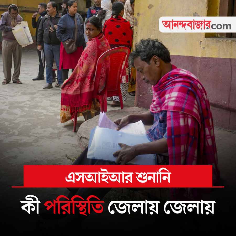 ভোটারদের শুনানির দ্বিতীয় সপ্তাহ চলছে। গত সপ্তাহের শনিবার থেকে শুনানি শুরু হয়েছে। জেলায় জেলায় ভোটারদের নথিপত্র যাচাই করা হচ্ছে। প্রথম দিকে জেলায় জেলায় ‘অব্যবস্থা’র অভিযোগ ওঠে। এরই মধ্যে শনিবার কমিশন আরও শুনানিকেন্দ্র চালু করার জন্য অনুমতি দিয়েছে রাজ্যের সিইও দফতরকে। রাজ্যের ১২ জেলায় ১৬০টি অতিরিক্ত শুনানিকেন্দ্র খোলায় সম্মতি দেওয়া হয়েছে। রবিবার শুনানি পরিস্থিতি কেমন থাকে, সে দিকে নজর থাকবে।