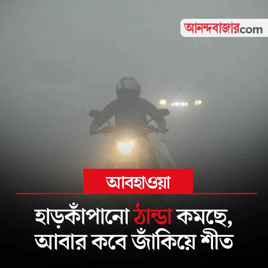 আগামী ২৪ ঘণ্টায় দক্ষিণবঙ্গের জেলাগুলিতে তাপমাত্রা আরও কিছুটা বাড়বে। হাওয়া অফিস জানিয়েছে, আগামী ২৪ ঘণ্টায় দুই থেকে তিন ডিগ্রি পর্যন্ত চড়তে পারে পারদ। তার পরের ২৪ ঘণ্টায় তাপমাত্রা একই রকম থাকবে। তার পর ফের পারদপতনের পালা। নতুন করে দুই থেকে তিন ডিগ্রি তাপমাত্রা কমতে পারে পরবর্তী দু’দিনে। উত্তরবঙ্গের ক্ষেত্রে আবার পূর্বাভাস ভিন্ন। উত্তরের জেলাগুলিতে আগামী ২৪ ঘণ্টায় তাপমাত্রার পরিবর্তনের খুব বেশি সম্ভাবনা নেই। তবে তার পরের তিন দিনে আরও দু’ডিগ্রি করে নামতে পারে পারদ।