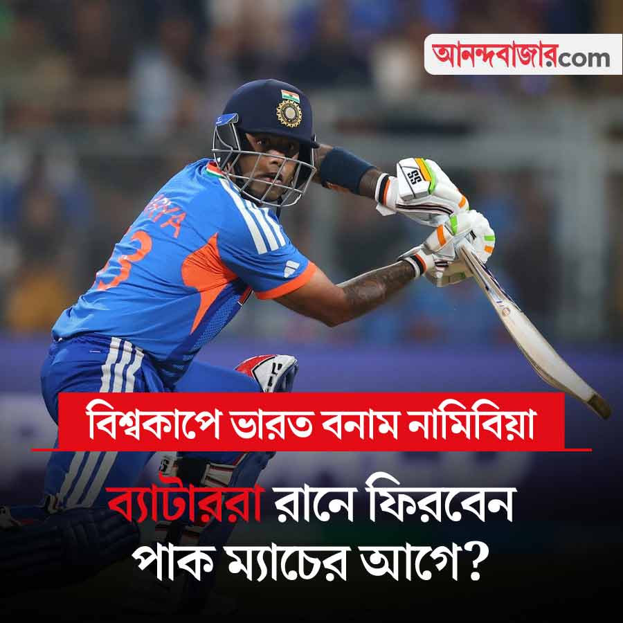 টি-টোয়েন্টি বিশ্বকাপে আজ দ্বিতীয় ম্যাচ খেলতে নামছে ভারত। বিপক্ষে নামিবিয়া। এই ম্যাচে খেলার সম্ভাবনা সঞ্জু স্যামসনের। কারণ, পেটের গোলমালের জন্য এই ম্যাচে অনিশ্চিত অভিষেক শর্মা। প্রথম ম্যাচে আমেরিকার বিরুদ্ধে সমস্যায় পড়েছিলেন ভারতীয় ব্যাটারেরা। দলকে উদ্ধার করেন অধিনায়ক সূর্যকুমার যাদব। রবিবার পাকিস্তান ম্যাচের আগে কি রান পাবেন ঈশান কিশন-তিলক বর্মারা? খেলা শুরু সন্ধ্যা ৭টা থেকে। তার আগে সকাল ১১টা থেকে রয়েছে শ্রীলঙ্কা বনাম ওমান ম্যাচ। বিকেল ৩টে থেকে রয়েছে নেপাল বনাম ইটালি খেলা। তিনটি ম্যাচই দেখা যাবে স্টার স্পোর্টস চ্যানেল ও জিয়োহটস্টার অ্যাপে।