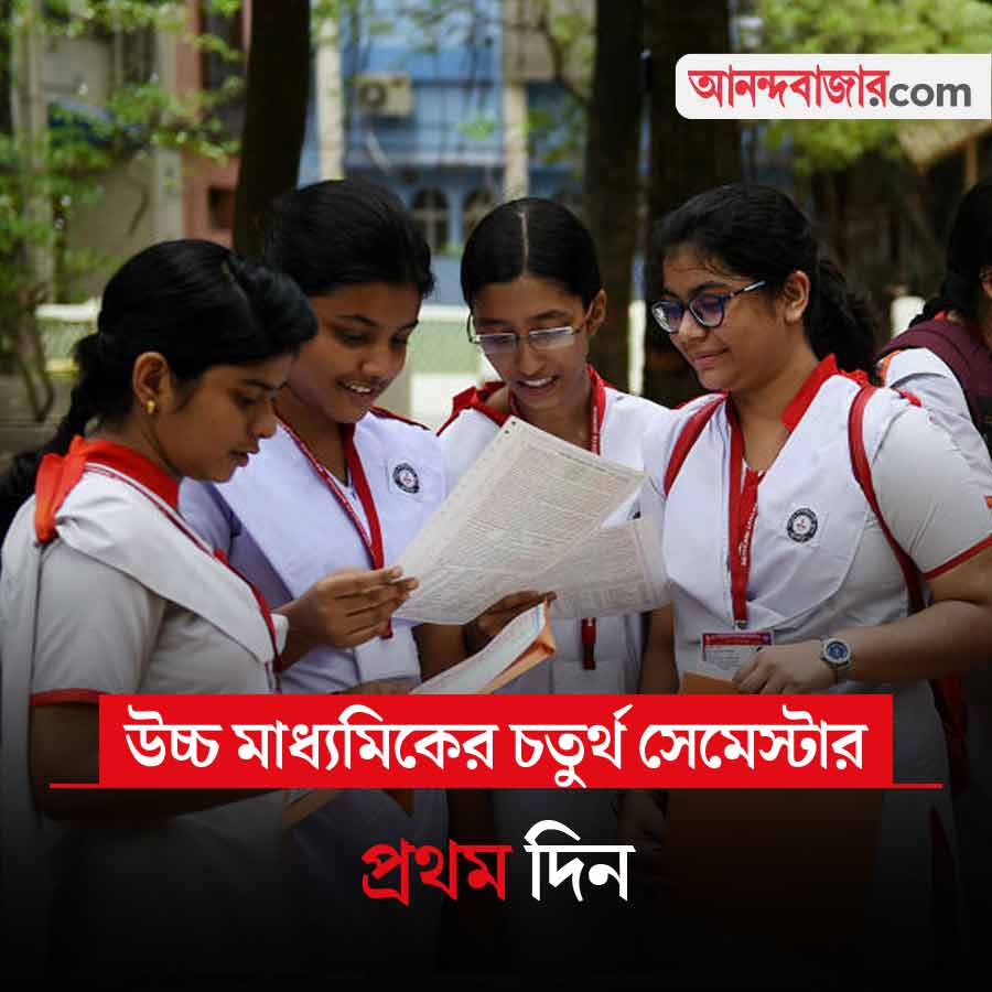 আজ থেকে শুরু হচ্ছে উচ্চ মাধ্যমিকের চতুর্থ সেমেস্টার। এ বছর প্রথম উচ্চ মাধ্যমিকে একই সঙ্গে তিন ধরনের পরীক্ষা হতে চলেছে। চতুর্থ সেমেস্টারের পাশাপাশি, তৃতীয় সেমেস্টারের সাপ্লিমেন্টারি এবং পুরনো বার্ষিক পদ্ধতিতে উচ্চ মাধ্যমিক। প্রতিটি কেন্দ্রে মোবাইল ডিটেক্টর দিয়ে দেহ তল্লাশির ব্যবস্থা থাকছে। পরীক্ষা চলাকালীন পরীক্ষার্থীদের কাছে মোবাইল ফোন বা কোনও বৈদ্যুতিন সরঞ্জাম পাওয়া গেলে তার এনরোলমেন্ট বাতিল করা হবে। পরীক্ষার্থীদের সকাল ৯টার মধ্যে পরীক্ষাকেন্দ্রে আসতে বলা হয়েছে।