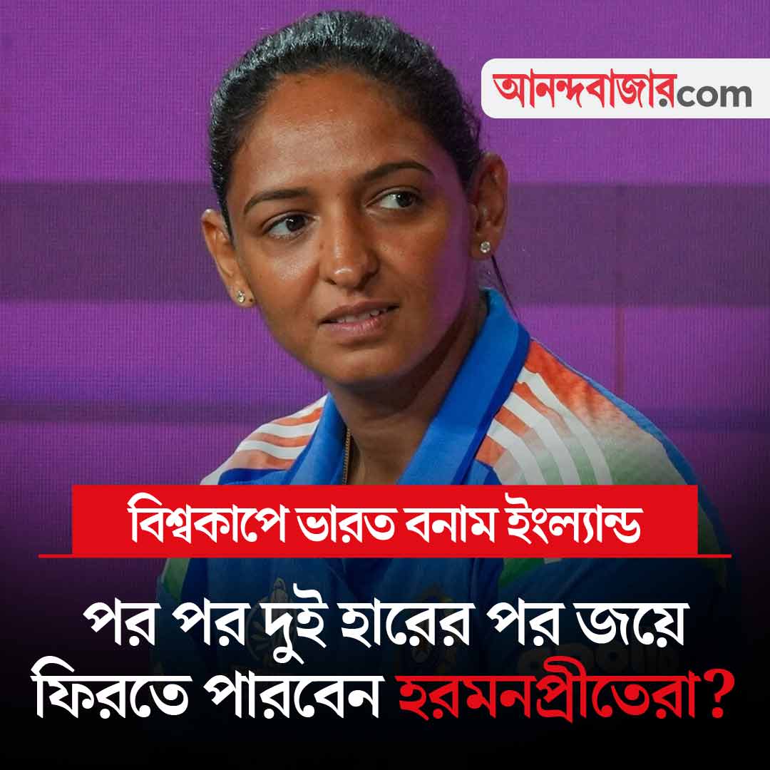 এক দিনের বিশ্বকাপের প্রথম দুই ম্যাচ জিতলেও পরের দুই ম্যাচে হারতে হয়েছে ভারতকে। জোড়া হারে চাপে হরমনপ্রীত কৌরেরা। আজ, ইংল্যান্ডের বিরুদ্ধে কঠিন ম্যাচ। তবে বিশ্বকাপের সেমিফাইনালে উঠতে হলে এই ম্যাচ জিততেই হবে ভারতকে। ইনদওরের মাঠে আজ দুপুর ৩টে থেকে শুরু খেলা। সরাসরি দেখা যাবে স্টার স্পোর্টস চ্যানেল ও জিয়োহটস্টার অ্যাপে।