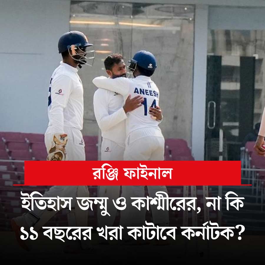 আজ থেকে শুরু হচ্ছে রঞ্জি ট্রফির ফাইনাল। এ বার মুখোমুখি জম্মু ও কাশ্মীর এবং কর্নাটক। সেমিফাইনালে বাংলাকে হারিয়ে ফাইনালে উঠেছে জম্মু ও কাশ্মীর। এই প্রথম রঞ্জির ফাইনালে উঠেছে তারা। কর্নাটক সেমিফাইনালে হারিয়েছে উত্তরাখন্ডকে। কেএল রাহুলের দলের সামনে দীর্ঘ ১১ বছর পর ভারতসেরা হওয়ার হাতছানি। শেষ বার ২০১৪-১৫ সালে চ্যাম্পিয়ন হয়েছিল কর্নাটক। পাঁচ দিনের ফাইনাল ম্যাচ শুরু সকাল ৯:৩০ থেকে। খেলা দেখা যাবে স্টার স্পোর্টস চ্যানেল ও জিয়োহটস্টার অ্যাপে।