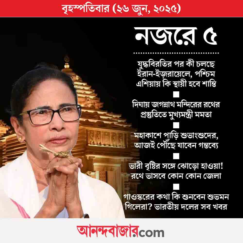 ইরান এবং ইজ়রায়েলের মধ্যে যুদ্ধবিরতি শুরু হয়েছে। দু’দেশের যুদ্ধবিরতি কি শেষ পর্যন্ত স্থায়ী হবে? এমন প্রশ্নও উঠতে শুরু করেছে। দু’দেশের মধ্যে যুদ্ধবিরতি স্থায়ী হলে পশ্চিম এশিয়ায় অস্থিরতা কাটতে পারে বলে মনে করা হচ্ছে। এরই মধ্যে আমেরিকার প্রেসিডেন্ট ডোনাল্ড ট্রাম্প দাবি করেছেন, ইরানের সঙ্গে ফের আলোচনার টেবিলে বসবে আমেরিকা। আগামী সপ্তাহেই ইরানের সঙ্গে আমেরিকার প্রতিনিধিদলের বৈঠক হতে পারে। সেখানে কোনও চুক্তি স্বাক্ষরিত হতে পারে, এমন সম্ভাবনাও উড়িয়ে দেননি তিনি। এই অবস্থায় পশ্চিম এশিয়ার পরিস্থিতি এবং আমেরিকার অবস্থানের দিকে নজর থাকবে আজ।