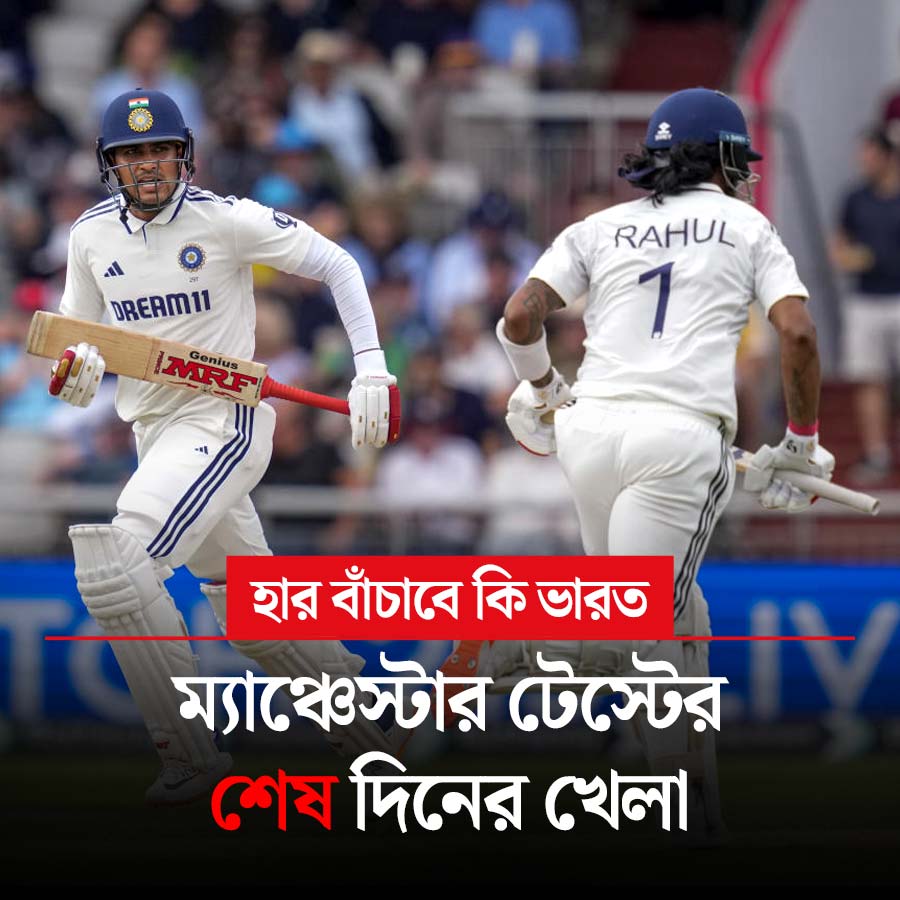 আজ ভারত বনাম ইংল্যান্ড চতুর্থ টেস্টের শেষ দিনের খেলা। হার বাঁচানোর লড়াই ভারতের সামনে। এই টেস্ট হারলেই সিরিজ়ও হেরে যাবেন শুভমন গিলেরা। সিরিজ়ের প্রেক্ষিতে ওভালে পঞ্চম টেস্টের আর কোনও গুরুত্ব থাকবে না। তবে বিশ্ব টেস্ট চ্যাম্পিয়নশিপের প্রেক্ষিতে সব ম্যাচই গুরুত্বপূর্ণ। আজ খেলা শুরু বিকেল ৩:৩০ থেকে। খেলা দেখা যাবে সোনি স্পোর্টস চ্যানেল ও জিয়োহটস্টার অ্যাপে।