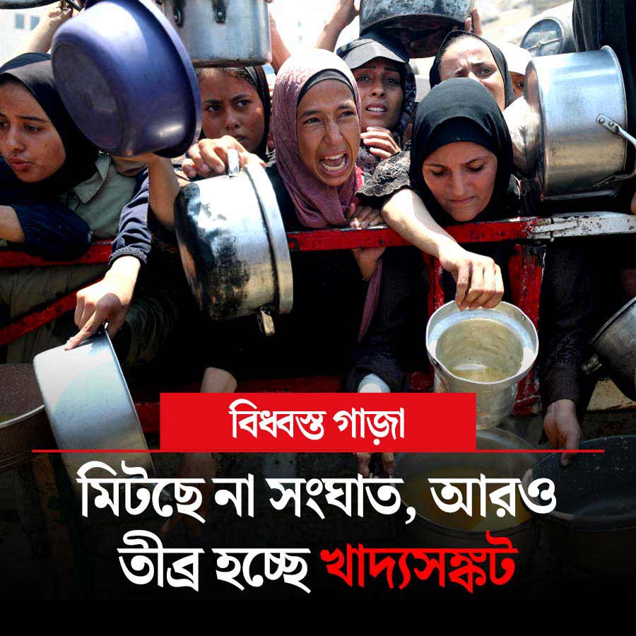 যুদ্ধবিধ্বস্ত গাজ়ায় সংঘাত এখনও থামানো যায়নি। শান্তি আলোচনার পথ ক্রমশ জটিল হচ্ছে। গাজ়ায় পরিস্থিতির জন্য প্যালেস্টাইনপন্থী সশস্ত্র গোষ্ঠী হামাসকেই দায়ী করেছেন আমেরিকার প্রেসিডেন্ট ডোনাল্ড ট্রাম্প। ইজ়রায়েল-হামাস সংঘর্ষের আবহে প্রাণ হারাচ্ছেন সাধারণ গাজ়াবাসীও। গা়জ়া ভূখণ্ডে খাদ্যের সঙ্কট ক্রমশ তীব্র হচ্ছে। সংবাদ সংস্থা এপি সূত্রে খবর, শনিবারও ইজ়রায়েলি হানায় অন্তত ২৫ জনের মৃত্যু হয়েছে গাজ়ায়। তাঁদের মধ্যে অনেকেই ত্রাণের ট্রাকের জন্য অপেক্ষা করছিলেন। এই অবস্থায় গাজ়া ভূখণ্ডের পরিস্থিতির দিকে নজর থাকবে আজ।
