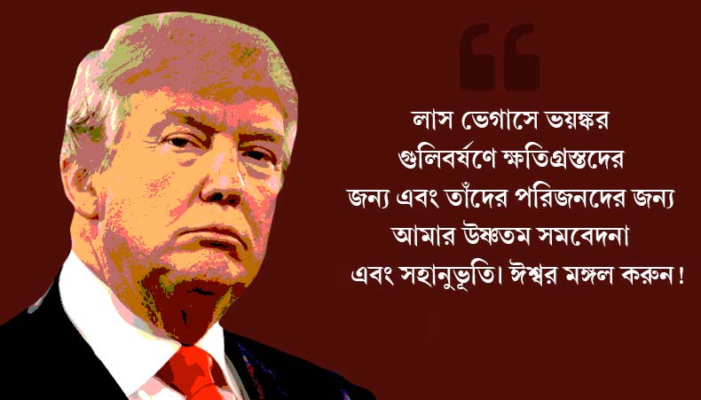২ অক্টোবরের রক্তাক্ত রাতে লাস ভেগাসে হামলাকারীর নাম ছিল স্টিফেন প্যাডক। ৫৮ জনের মৃত্যু হয়েছিল প্যাডকের গুলিতে। ৫০০-রও বেশি মানুষ জখম হয়েছিলেন। কিন্তু, প্রতিক্রিয়া দেওয়ার আগে পাঁচ ঘণ্টা সময় নিয়েছিলেন প্রেসিডেন্ট।