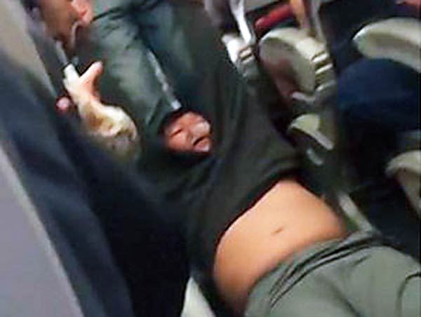 গত সপ্তাহে ডেভিড ডাওকে এ ভাবেই জোর করে বিমান থেকে নিয়ে যাওয়া হয়েছিল। ছবি: টুইটার।