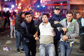 পুলিশের হাতে ধৃত আর্জেন্তিনা সমর্থক। ছবি: গেটি ইমেজেস