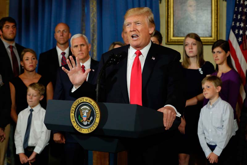 আমেরিকার কাছ থেকে বিপুল অঙ্কের অর্থসাহায্যও নেব, সন্ত্রাসবাদীদেরও আশ্রয় দেব— পাকিস্তানের এই নীতি আর সহ্য করা হবে না। ক্ষমতায় আসার পর থেকেই খুব স্পষ্ট করে এ কথা বুঝিয়ে দিচ্ছেন ট্রাম্প। ছবি: এএফপি।