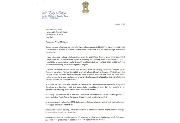 বিজয় মাল্যর সেই চিঠি