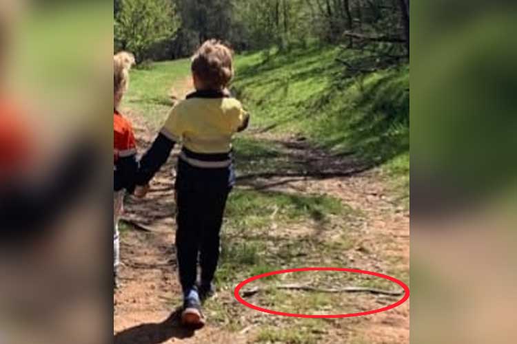 অস্ট্রেলিয়ার এস্কডালেতে মিট্টা মিট্টা নদীর পাশে পরিবারের লোকেদের সঙ্গে ঘুরতে গিয়েছিল দুই খুদে। সেখানে দু’টি বাচ্চা যখন হাত ধরে হেঁটে যাচ্ছিল, তখন তাদের পায়ের একেবারে কাছ দিয়ে বেরিয়ে যায় বিষধর ইস্টার্ন ব্রাউন সাপ। সে সময় বাচ্চা দু’টির পিছন থেকে ছবি তুলছিলেন তাদের মা। তাঁর ক্যামেরায় ধরা পড়ে মাটির সঙ্গে প্রায় মিশে থাকা সাপের ছবি। সেই ছবির মধ্যে সাপ খুঁজে বের করার ‘খেলা’য় এখন মেতেছেন নেটিজেনরা।