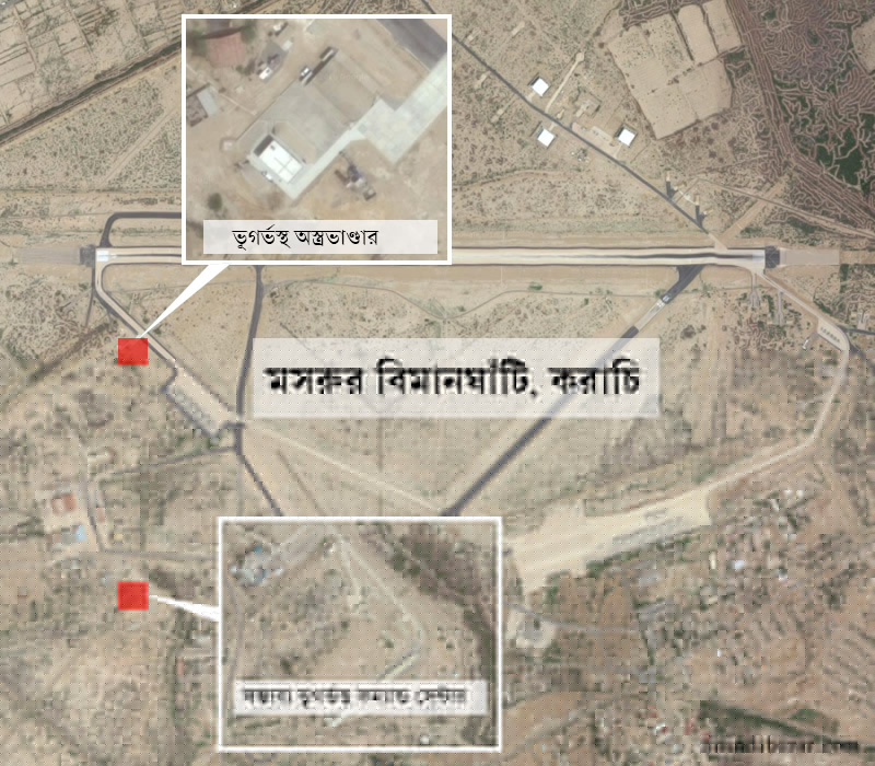 রিপোর্টটিতে করাচির পশ্চিমে অবস্থিত মসরুর বিমানঘাঁটির কথা বিশেষ ভাবে উল্লেখ করা হয়েছে। পাক বিমানবাহিনীর যে অংশকে পরমাণু হামলার উপযুক্ত হিসেবে গড়ে তোলা হয়েছে, সেই যুদ্ধবিমানগুলিকে মসরুর বিমানঘাঁটিতে রাখা হয়েছে বলে খবর। উপগ্রহ চিত্র বিশ্লেষণ করে মার্কিন বিশেষজ্ঞরা দেখিয়েছেন, নিশ্ছিদ্র নিরাপত্তায় মোড়া মসরুর বিমানঘাঁটিতে সম্ভবত একটি ভূগর্ভস্থ অস্ত্র ভাণ্ডার রয়েছে। একটি ভূগর্ভস্থ কম্যান্ড সেন্টারও সেখানে রয়েছে বলে রিপোর্টটি ইঙ্গিত করছে।