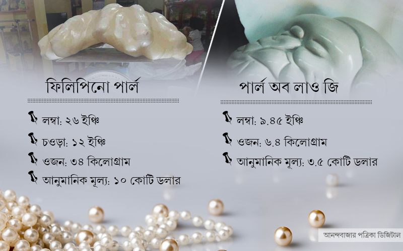 এই মুহূর্তে বিশ্বের সবচেয়ে বড় মুক্তোটি রাখা আছে নিউ ইয়র্কের একটি বেসরকারি প্রদর্শশালায়। সেই ‘পার্ল অব লাও জি’র ওজন ৬.৪ কিলোগ্রাম। নতুন খোঁজ পাওয়া এই মুক্তোর কাছে যা নস্যি। ১৯৩৪ সালে এই মুক্তোটিরও খোঁজ পাওয়া গিয়েছিল ফিলিপিন্সেই।