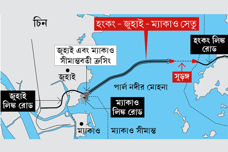 ন’বছর ধরে প্রায় দেড় লক্ষ কোটি টাকা খরচ করে এই ‘সি ক্রসিং ব্রিজ’ (সমুদ্র সেতু) তৈরি করেছে চিন সরকার। ভূমিকম্প এবং ঘূর্ণিঝড়ের তাণ্ডব আটকাতে বিশেষ প্রযুক্তি ব্যবহার করা হয়েছে এতে। ব্যবহার করা হয়েছে চার লক্ষ মেট্রিক টন ইস্পাত, যা দিয়ে নাকি ৫৫টি আইফেল টাওয়ার তৈরি করা যাবে। পার্ল নদীর উপর প্রায় তিরিশ কিলোমিটার রাস্তা রয়েছে সেতুটির। জাহাজ চলাচলের রাস্তা খোলা রাখতে তাই সেতুটির প্রায় সাড়ে ছ’কিলোমিটার অংশ সুড়ঙ্গের মধ্যে দিয়ে গিয়েছে।