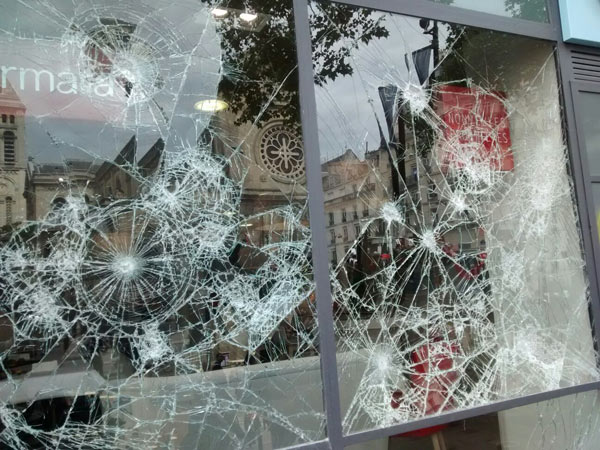 দোকান ভাঙচুর। প্যারিসের রাস্তায়। মঙ্গলবার।