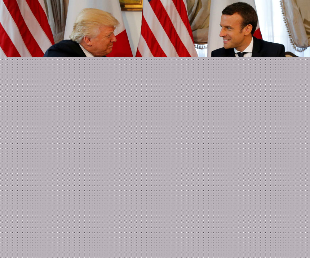 ফরাসী প্রেসিডেন্ট মাকরঁ-র সঙ্গে করমর্দনের প্রথম দফায় এঁটে উঠতে পারেননি ট্রাম্প। ফাইল চিত্র।