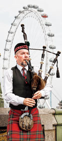 লন্ডনের রাস্তায় স্কটিশ বাদক। বৃহস্পতিবার। ছবি: রয়টার্স।